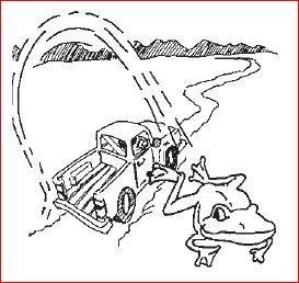 Babaya inya sampai di pinggir kartak, ada trak lalu di situ. Kuduk mancuba baluncat ka dalam bak trak. Sakalinya kalincauan inya baluncat. Kada jadi taumpat am inya di trak tadi sualnya traknya bajalan tarus.