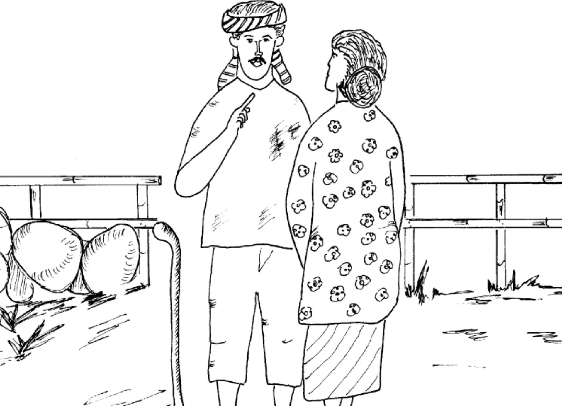Sidin bakisah wan bininya napa nang dipikirakan. ”Hanyar talu tahun pian bakabun di situ” ujar bininya.