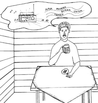 ”Mana kawa kita manukarnya? Pupuk tu larang haraganya. Aku gin suah mandangar siaran panyuluhan partanian di radio amun pupuk moderen tu kada baik gasan tanah dudinya” ujar Julak Udin manyahut.