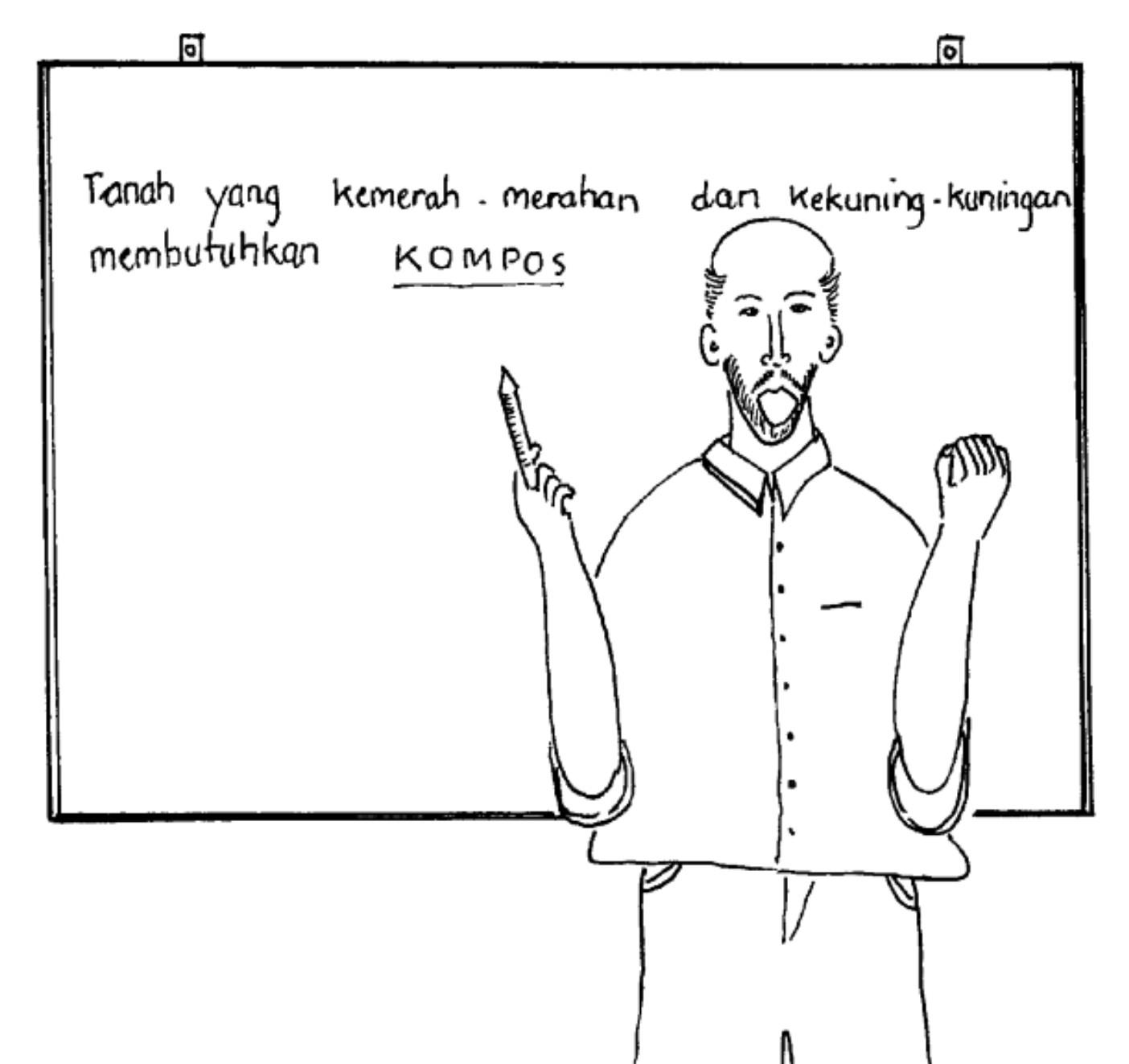 Bubuhannya mandangar amun tanah nang pina kuning wan nang pina habang mamarluakan kompos sakira tanahnya kada masam lagi. Panyuluhnya manakuni urang-urang kampung, "Baik juakah hasil kabun bubuhan pian?" Banyak nang maulingakan kapalanya tamasuk jua Julak Udin.