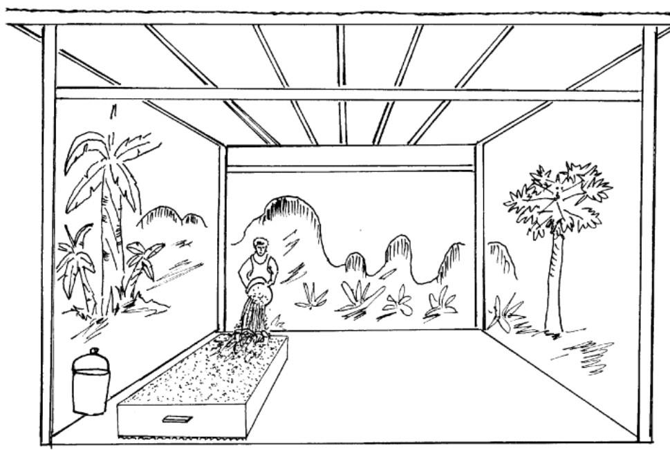 Lalu ditukupi bubuhannya lawan lapisan kapur wan habu dapur. Imbah itu, bubuhan panyuluh tu mamadahakan amun bubuhannya kawa jua mamakai pupuk kandang. Lalu lapisan kadua diulah matan dadaunan hijau nang banyak nitrogennya.