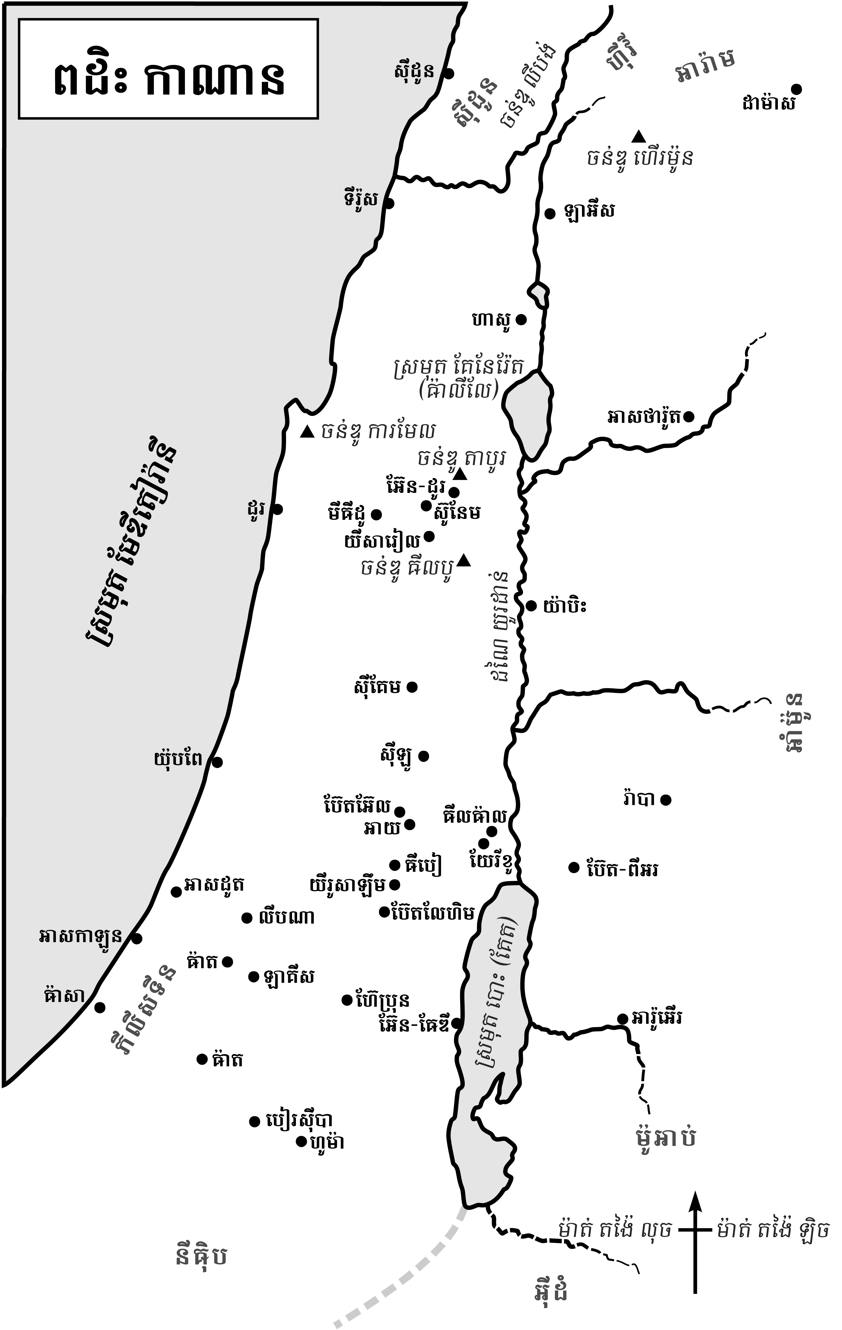 7 នែ ឡើយ បូវ សឋិច លែក អ៊ែ ឡា គូ កនុង ស្រ៊ុក ពដិះ យ៉ូសាវែ វ៉ា បូវ អ៊ីស្រាអ៊ែល ឡា បត់ ចក់ តូយ ម៉ាត់ តង៉ៃ លុច ពឹះ ដណៃ យួរដាន់ តើម ឝឹត មឿង បាល-កាដ ទឹង ចង់ហ៊ូរ ចន់ឌូ លីបង់ និះ ប៊ឹះ ចន់ឌូ ហាឡាក ទឹង ឌី ឞន ឌឹក នឹង ចន់ឌូ សៀរ (ពដិះ អ៊ែ យ៉ូសាវែ កគ់ ព្រណាក ឌី ភូង យូ សាត អ៊ីស្រាអ៊ែល ជុ ប៉ិន ព្រឋុក តាម ព្រណាក មែ