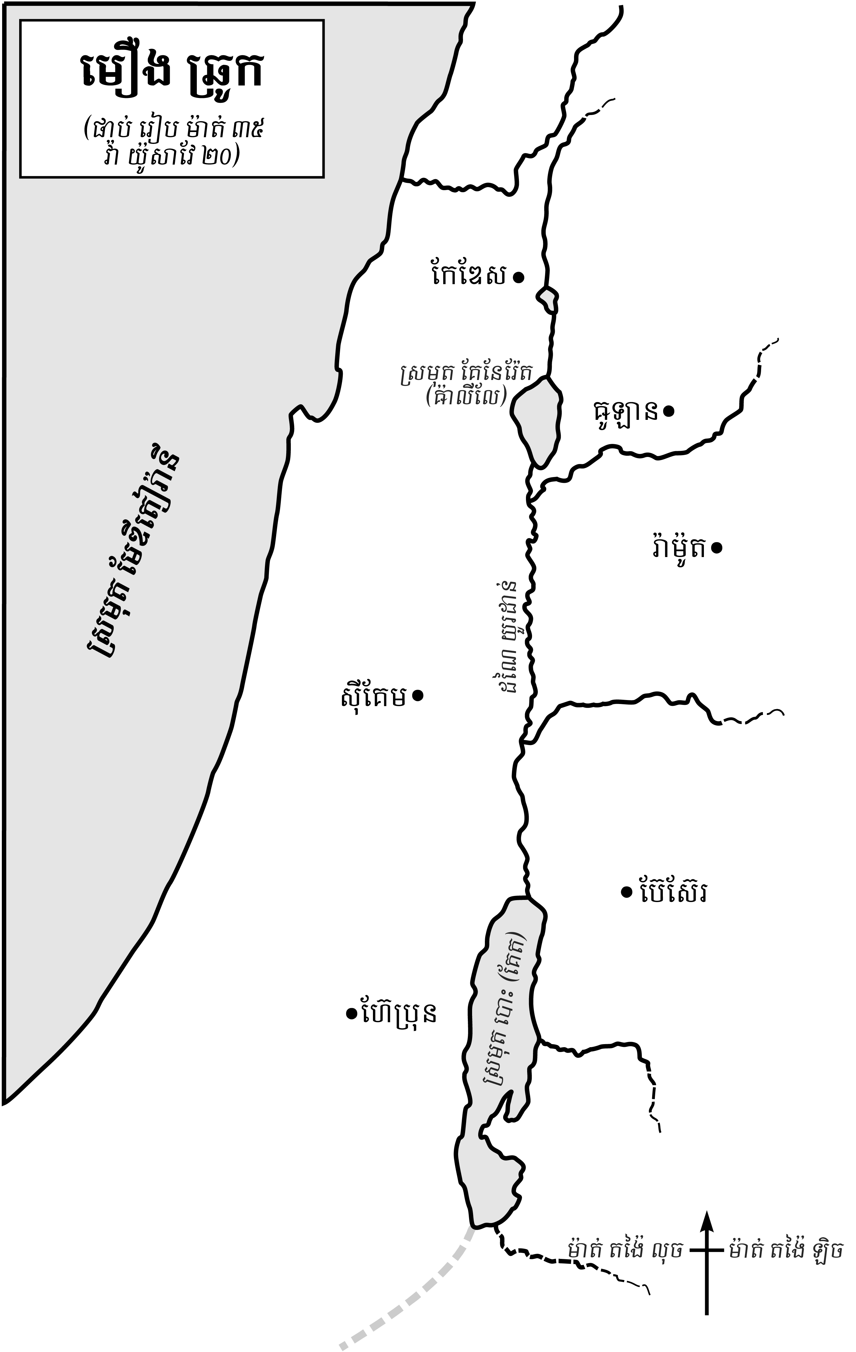ប្លូច អ៊ែ ហ ឡា កជែត មែ អ៊ែ ហ ម៉ា ដូវ ជឹ ហ៊ឹ ហ្នាម ហ កឡឹ វ៉ា ហ ម៉ា ដូវ ជឹ កស៊ឹត ត្រិចទឺ ហ៊ឹ ស្រ៊ុក ហ ឡា ដូវ ត្រយ៉ាវ ពឋើម អ៊ែ”»។