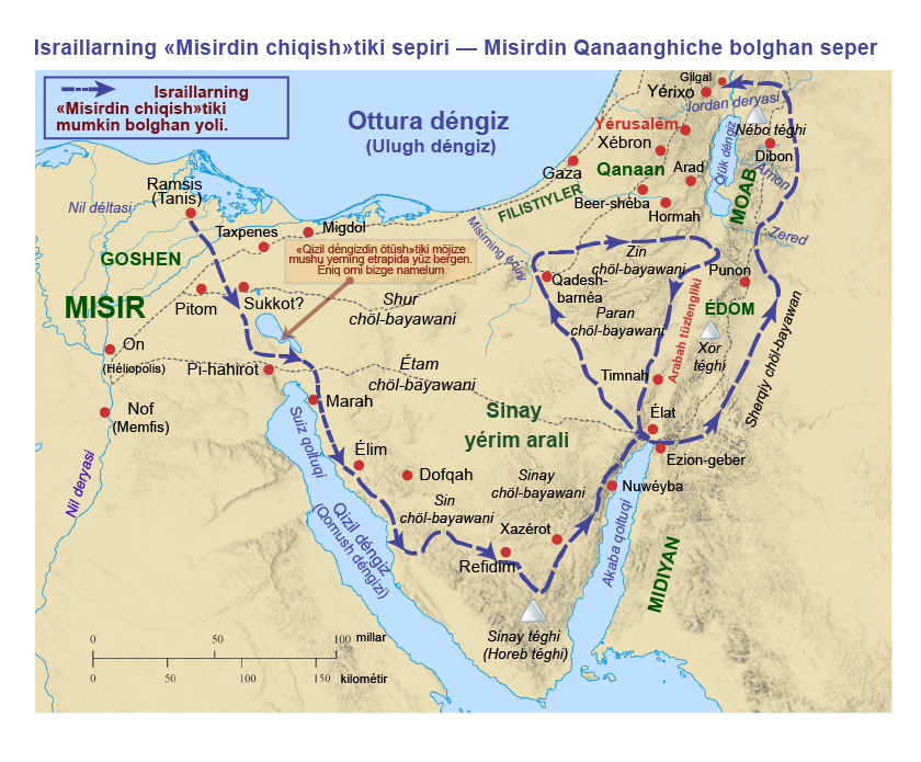 Lékin Israillar bolsa déngizning otturisidin quruq yerdin méngip ötüp ketti». ◼