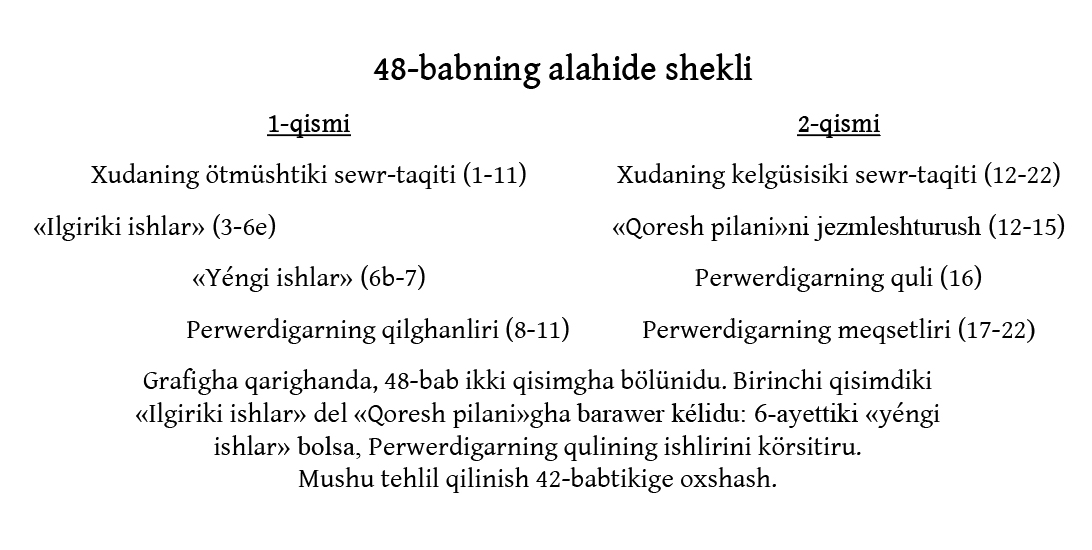 48-babning alahide xekli -- «Ilgiriki ishlar» we «Yénji ishlar» («Yesh.» 48:3)